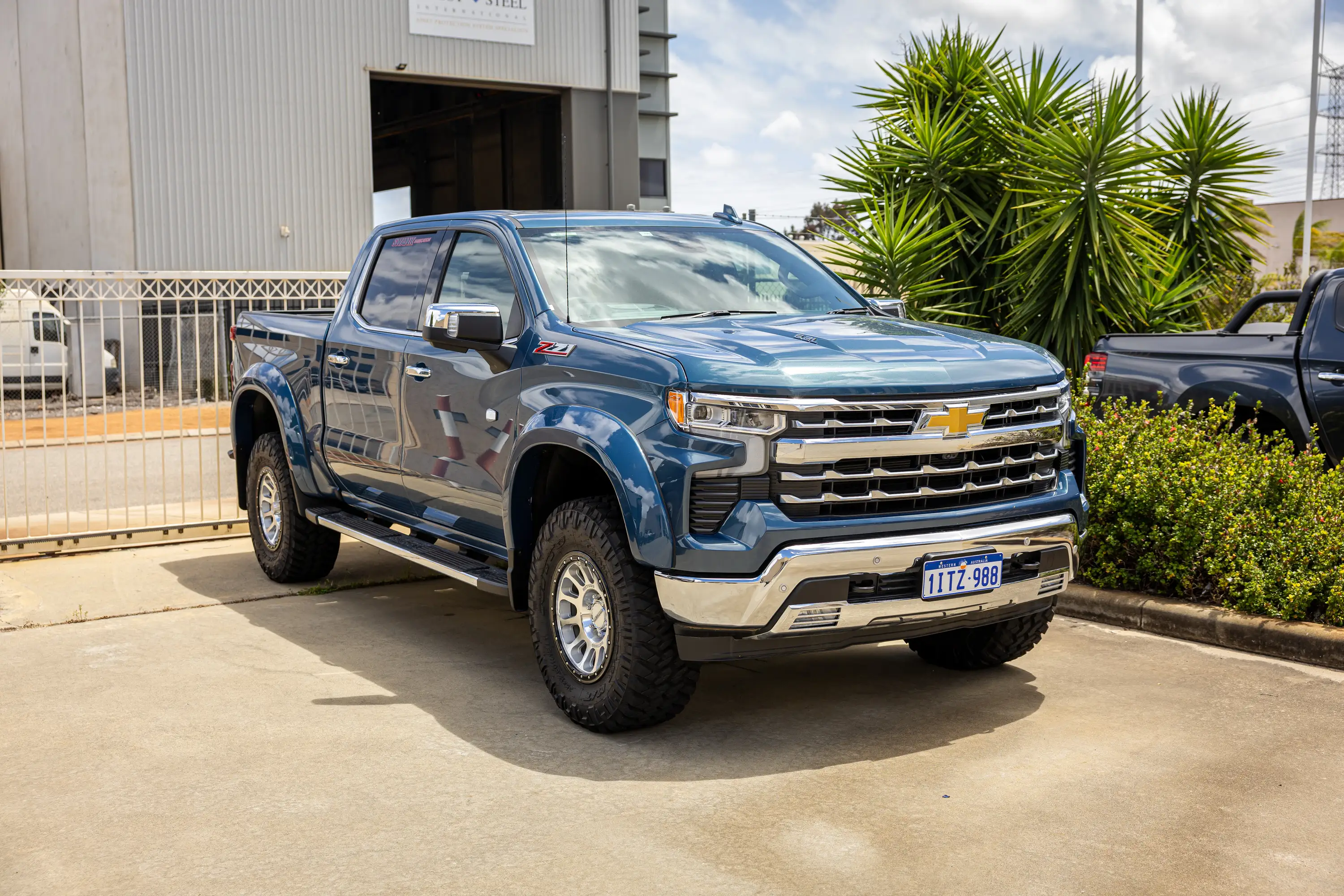 Chevrolet Silverado 1500 with pre-rego 4499 GVM upgrade from Touring Solutions Australia installed with APEX Predator shocks.